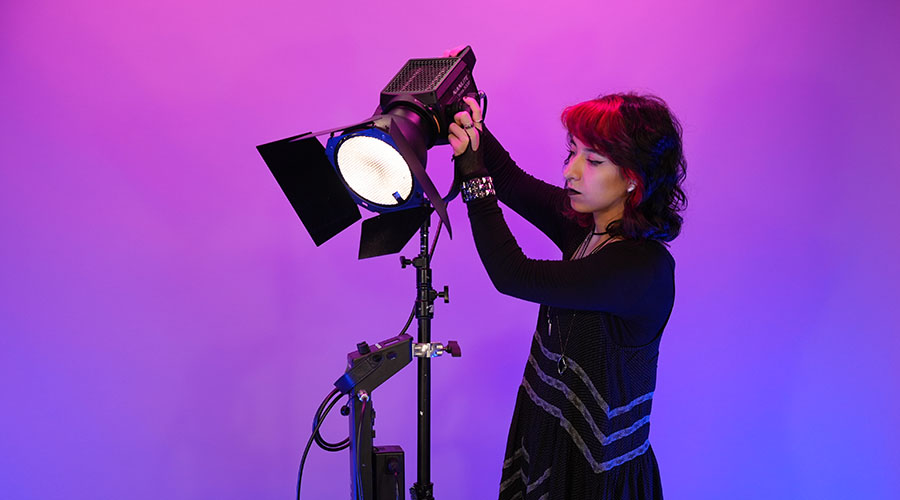 The Media Lab has pro lighting equipment available for student productions.