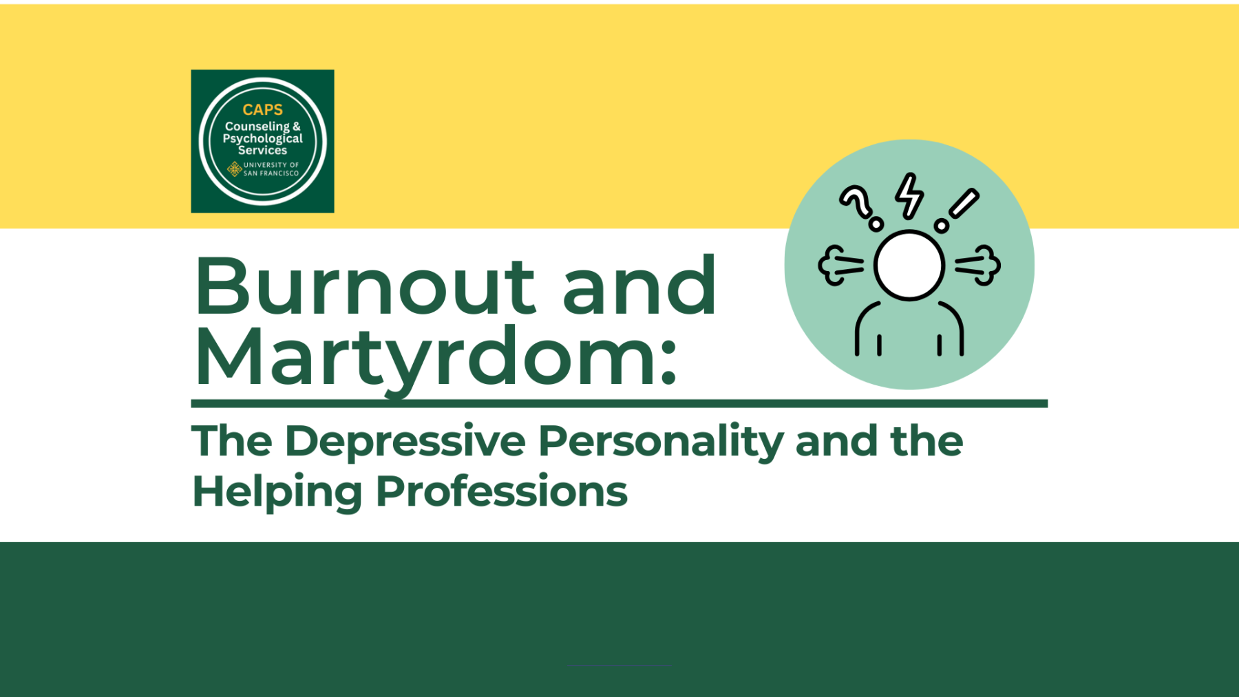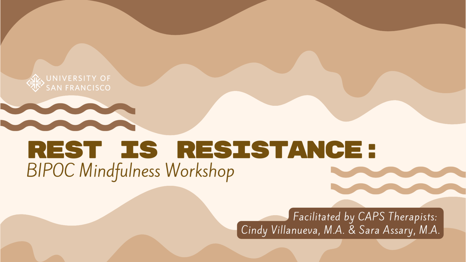 Location: UC 411 and over Zoom (Are you interested in attending but a non-main campus student? Please complete this form, and you will be emailed telehealth options.) - Open to all USF community members. If you need disability‑related accommodations or wheelchair access information, contact caps@office.usfca.edu.