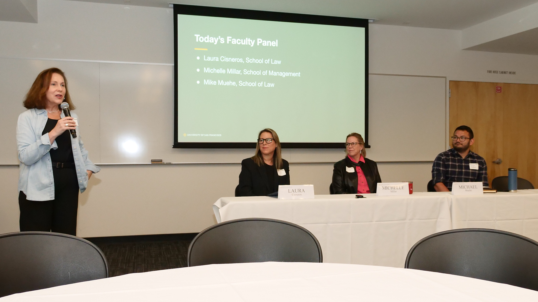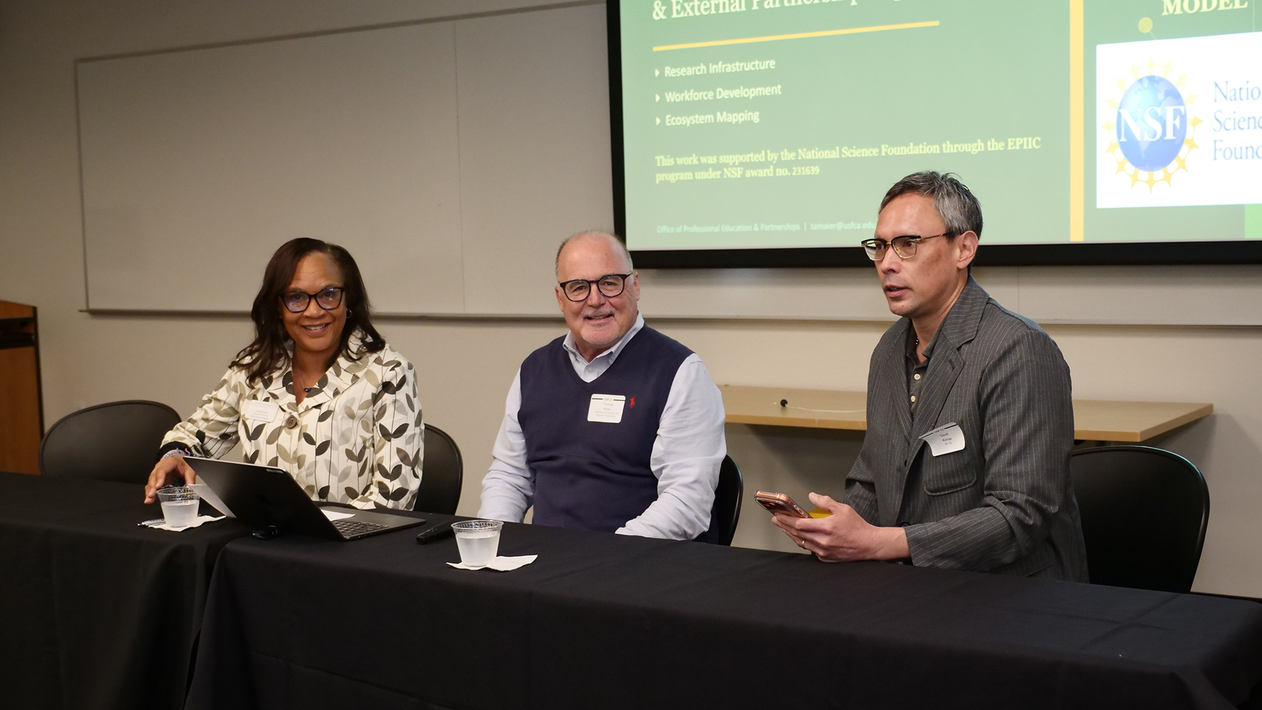 Eugene Kim, Professor, School of Law; Edward Munnich, Professor, Psychology; and Kelsey Urgo, Assistant Professor, Computer Science
