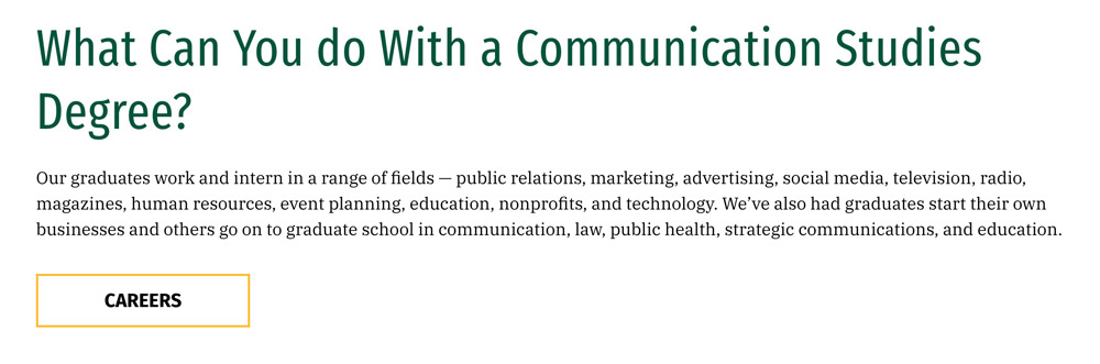 Answer the question. Be specific. Tell students which roles they might fill and/or fields they might pursue with this degree.