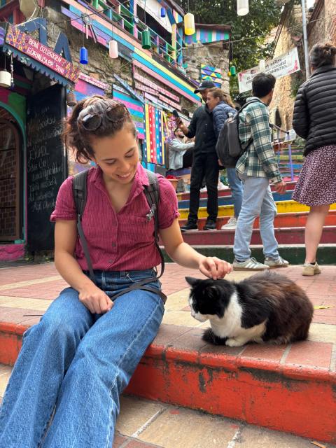 I visited my friend in Istanbul, Turkey in October. We wandered winding streets with stray cats and colorful buildings, and marveled at mosques illuminated by the setting sun while walking along the Bosphorus.