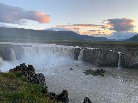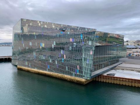 View of the Reykjavik Opera House (Iceland) from aboard a National Geographic cruise.