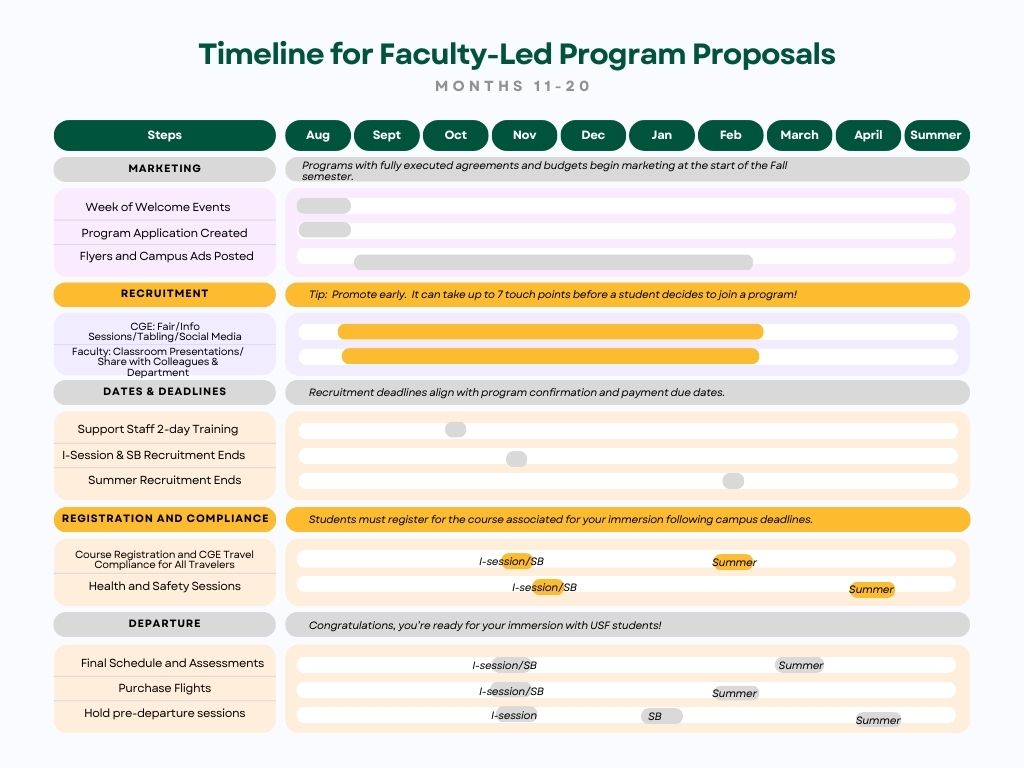 • Finalize any pending agreements, budgets, program activities, and required course information (e.g. CRNs)